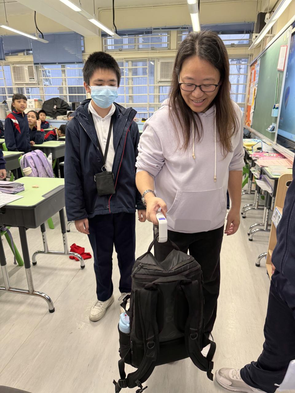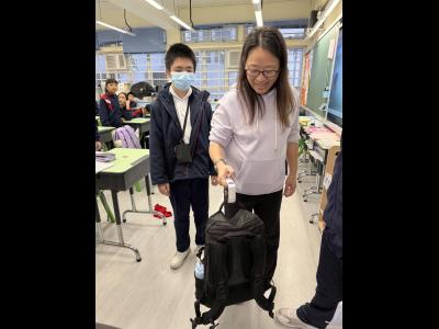 為了讓同學們的學習生活更健康、更輕鬆,本校特別舉辦了「減輕學童書包重量比賽」。活動當天,各級訓育老師抽選同學量度其書包重量,同學們都很期待。有些同學因為書包重度達標而露出得意的笑容;有些則因為書包太重而忍不住驚呼起來。這次活動目的是喚起同學們應關注書包的重量,培養每天執拾書包的習慣。